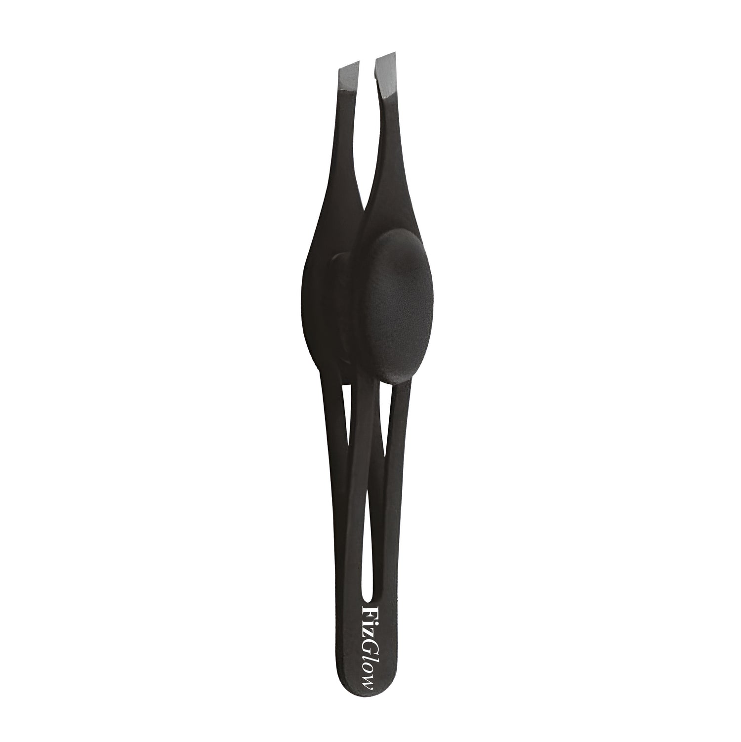 Fizglow Black Comfort Grip Tweezer combines precision and comfort for effortless grooming. Its ergonomic black-coated handle ensures a secure, non-slip grip, allowing for smooth and accurate use. Designed with slanted tips, it expertly removes even the finest hairs, making it perfect for shaping brows and tackling stray hairs.